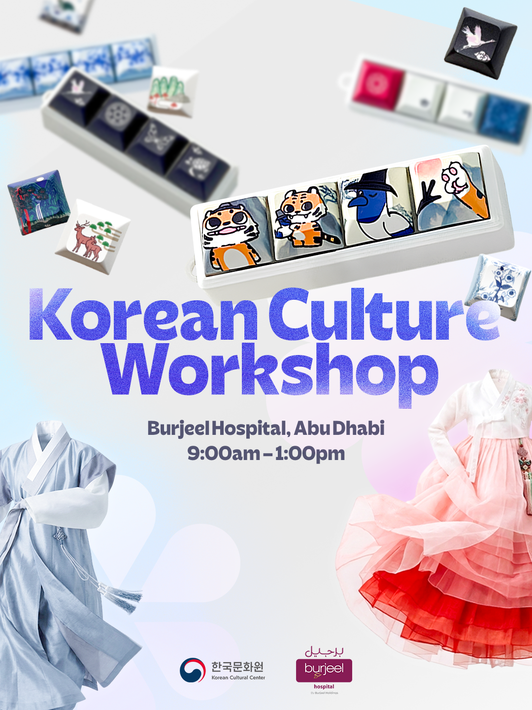 The Korean Cultural Center will host a Korean Culture Experience Workshop as part of the opening ceremony of the Korean Pavilion at Burjeel Hospital Abu Dhabi. We warmly invite all interested participants to join us.
